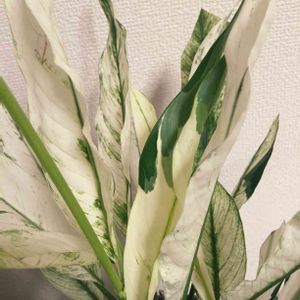 上のディフェンバキアは、カテリーナ。下はアンナ。今のところ見た目に大きな違いはない。店員さんに訊いてみたところ、タグに間違いはなく、別品種との事。アロカシアは小型品種のバンビーナ。それと、斑入りスパティフィラム。