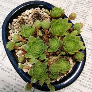絵コンロ缶のセンペルビウム 3種類1個ずつ植えたのが ぽこぽこ増えた