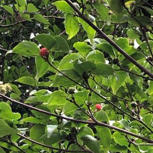 ヤマボウシの実。公園で見つけました。 丸くて赤くて、食べられるようです😊