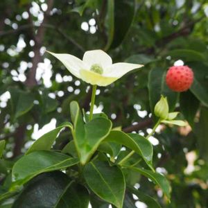 ヤマボウシの実(南八ヶ岳花の森公園⑦) 木の実シリーズ No.2/5枚 ミズキ科ミズキ属 ヤマボウシはハナミズキに似た白い綺麗なお花で、特に先のとがった総苞(花弁ではないそうです)が、シャープな感じで好きなお花です。 GSでは、実を見たことがありましたが、実際に見たのは初めてでした。実の中に種子が1~3,4個入っているそうです。 果肉はやわらかく、赤く熟すと、マンゴーのような甘さがあり、ジャムにも向いているようです。 花、果実、紅葉と3回楽しめるヤマボウシ、凄い❤