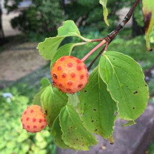 実がついたヤマボウシ😳 実家にあったけど小さな木だったので、実は初めて見ました