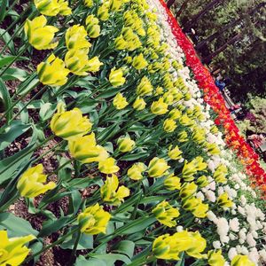 植物園のチューリップ🌷🌷🌷🌷🌷🌷🌷🌷 並んで赤白黃色!🎶 🤗❤️🤍💛💞🎶🌿🌿