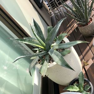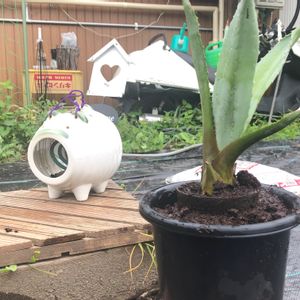 前に‥Baーサンちから連れてきた子‥‥ Baーサンわアロエと言いきってたけど笑 Baーサンに持って来てくれた人に会うことができた♬ ‥もらた事も忘れてたBaーサン😅 ‥‥ アガベ君!☆☆ アメリカーナ☆☆ かなり大っきい親がいるらしい〜 この子も♡おっきくなるよに頑張る➿♬
