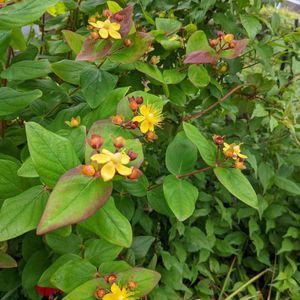 お隣さんち、畑にヒペリカム。うちのはまだ、咲いていない!🙄🤔日当たりは同じなのに、なぜ?🤣😅☀️😱