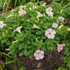 フリル咲き、ペチュニアとミスマーラベス、ペチュニア、オステオスペルマム、ブルースター🤣寄植えより〜今日は、ダラダラしてます。🤭😅🥴💉🩺🩻🏥