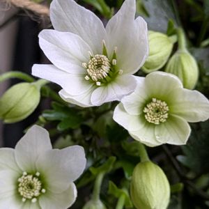 待ちに待ったカートマニージョーの開花です。 ずっと憧れていたお花でした。 クレマチス自体育てるの初めてなので 誘引も見様見真似です。 株元から新しいつるが延びてるので 早く誘引しなくてはいけませんね。 成長があまり早くないみたいで 蕾を確認してから待ち遠しかったです。 小振りですがお花はたくさん咲きそう。これからが楽しみです。 帰宅後お花を確認してから嬉しくて嬉しくて、 暗くなるまで玄関先でずっと見てました。