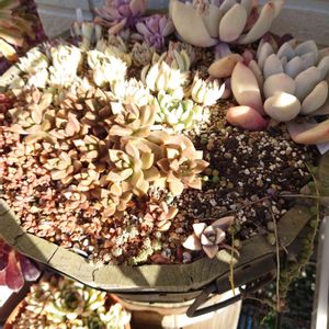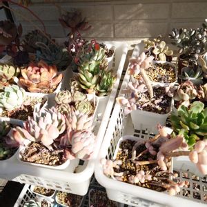 GSもインスタもずっと投稿は滞ってますが多肉さんたちとても元気です(^^) 少しずつだけど植え替えも順調。 近々外壁塗装をやるかもしれなくて我が家の大量の多肉さんたちを室内に一ヶ月近く避難させなきゃで頭抱えてます。 台風時とは違い長期間だから日当たりも考えておかないと🥲 ベランダも工事入るからベランダにも置けない🥲 すでに日当たりいい場所に室内組の多肉棚があり、インコたちもいる。 場所がない😭 インコも実家に避難するからインコの場所に置こうかな。 この季節に外組の多肉さんたちがお外にいられないのは初めてになる。 環境の変化についていけるか… 今までと水やりも変えたり日当たるようにたまに向き変えたりして乗り切るしかないですね。 なにげに室内の方が元気に育ったりするかもしれないし😂 それか庭の端っこに多肉棚を持ってくのもアリかな。 シェード掛けたり雨ざらしにならないよう工夫すれば… 色々考えてます🤔