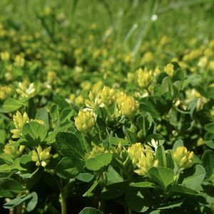 コメツブツメクサ(米粒詰草) マメ科シャジクソウ属 小さな黄色の花が咲くと こんな所にも増えて来たのかと驚きます🌼☘️ 花後には花弁が下向きになり残ります これはシロツメクサと同じ シャジクソウ属の特徴です🌼😊🎶