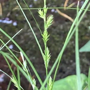ヒゴクサ カヤツリグサ科スゲ属 ①②柄の先に可愛い果実ができました 頂小穂は、線形で長く雄性 側小穂は、雌性1〜3個長い柄がある 雌花の柱頭が長く目立つ ③4月に見た時は柄が伸びてなくてエナシヒゴクサかなぁと果実になるのを待っていました 雌花の柱頭が特徴のようです 来年は早く見に来たいです 💚😃🎶