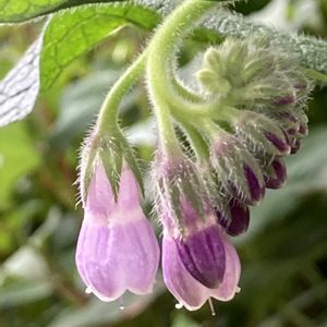 ヒレハリソウ(コンフリー) ムラサキ科ヒレハリソウ属 草むらに可愛い花が咲きました💗 健康野菜のブームの名残りでポツリとポツリと毎年出てきます💗 毒性が指摘されて見向きもされなくなったそうですが 花はとても可愛い 大きなサソリ花序を持つ ムラサキ科の花です💗 国内の物のほとんどは純粋なヒレハリソウでなくオオハリソウ(コーカサス地方原産)とヒレハリソウ(ヨーロッパ原産)との交雑種と言われているそうです 葉の基部から茎に流れる翼があり 葉や茎に硬い毛があります🌿