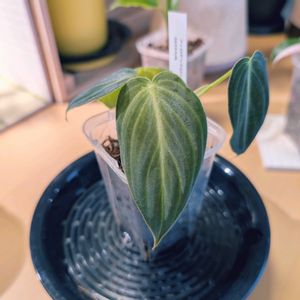 2週間前に手に入れていた、村長の直売所のフィロデンドロンメラノクリサム🌱 我が家に来てから葉っぱが1枚開き、緑色になりました🤗 キラキラ光る葉っぱが不思議で可愛い✨