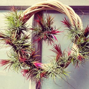 ティランジア イオナンタ フエゴ 村長の直売所 フエゴフェスタにて大量のフエゴゲット DAISOのリース 大小色々買ってきて リースにしました ほとんどがクランプ状で 特にまるくなってるものを真ん中に吊るしてみたり 色づきよく花が次々に咲くのでまだまだ楽しめそうです たくさん作ってお友達にもお裾分け 針金でつってみたり コルクのコースターやコルク栓に固定してみたり 楽しみ方は無限大