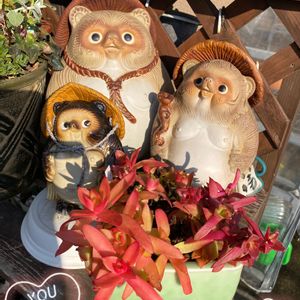 祖母の家の狸(通称ヌシ様)に寄せ鉢してみました。