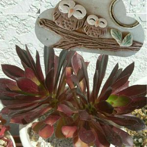 おはようございます☀ 雨は止んでやっと晴れて来ました🎶 フクロウ祭に参加しま〜す(⊙v⊙)ホ--- この前信楽へ行った時に📸パチリしてきたフクロウさん達と華ちゃんちから嫁に来てくれた黒法師さん♣♣ この黒法師さんツンツンした葉っぱなんです😆 皆さんの黒法師さんとちょっと姿が違う🙄? 私的にはこのツンツンが気にいってるんですよ😆💓