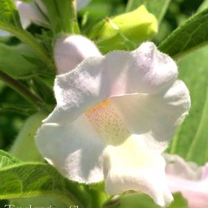 今日のお花❀✿ ゴマ(胡麻﹅)💟 ゴマ科ゴマ属 長い茎に薄っすら紫🟣がかった 釣り鐘のような形の可憐な花💠💠 昨年植物園より🤳🎵 🏷️可憐な火曜日