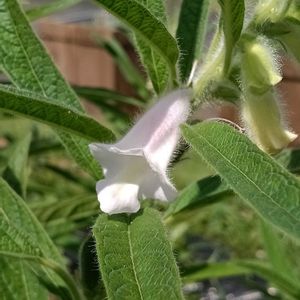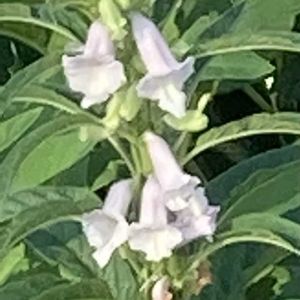 8月26日 今日のお花 ❀🤍🌿 ゴマ 🌿🤍❀ ごまには、ごま特有の成分である「セサミン」をはじめ、カルシウム、マグネシウム、鉄分など、ミネラル成分がバランスよく含まれています。 友達からのpicです 🏷️火曜日は白い花