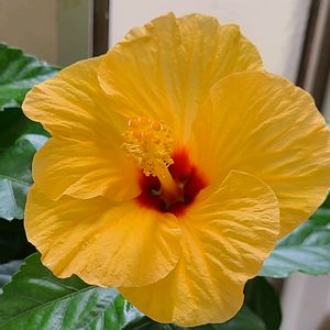 こんにちは👋😃 ハイビスカス アテネ。 久しぶりに、濃い黄色 花が咲きました。 この花は、2日間咲いています。 液肥入り水やりしました。花径12cmです。