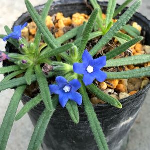 秋にお迎えしたアンチューサ ケスピトーサが咲きました💙 いかにも暑さに弱そうな雰囲気なので夏越しできるかなあ☀️💦