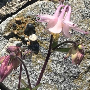 まだ、いたいた! オダマキさん💕 オダマキ投稿は、これが最後かな? このピンクのオダマキ、嬉しいことに、お隣さんから我が家に飛んできた😆🎵 石垣の上から、落ちてきたんだわ! 嬉しい〜😍