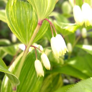 午前中 庭を眺めると 斑入りのアマドコロの美しい葉模様と コロンコロンとした可愛いお花に 感動でした✨ つい最近、芽が出てきたと思っていたら あっという間に背が高くなって 去年より場所を広げて😅 でも、綺麗なので 増えても嬉しいアマドコロさんです😊 🏷チロリン隊のお仲間に入れてください😊