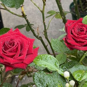 秋薔薇 雨上がりのイングリットバーグマン ハリウッドの北欧系有名女優の名前を冠した薔薇。 病気に強くてとても美しい真紅の薔薇です。