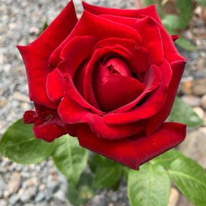 暑い中咲いてくれて有難う🌹 赤の薔薇は小さくても存在感ありますね。
