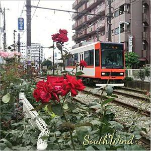 Birthday picture No.1 都電荒川線と沿線のバラ。 荒川線沿いには、バラが多く植えられています🌹 今日は一日中、東京巡り! これは大塚駅前と向原の間です。ちょうど、赤い車両がやってきました。