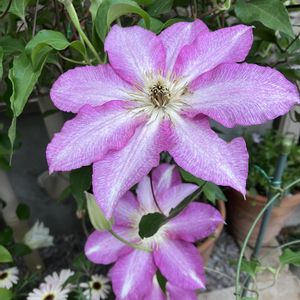 こちらは自宅門前、 つるバラとのコラボレーションを楽しみに置いていた鉢植えクレマチス、月香さん。 薔薇よりさっさと開花中ではあるものの、 涼しげに目立っていて、門前で今だけ主役。 何度も見にいってしまう可愛らしさデス☺️