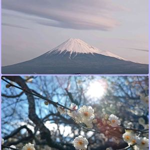 紅梅(バラ科サクラ属) 山の公園の紅梅、木によって満開になってきました。 昨日は暖かく天気が良かったので、富士山とのコラボがステキでした。 富士山にかかっている線は梅の新芽です。 横で新芽の剪定をしていました。 🏷 ピンクワールドへようこそ 🏷 19日はピンクの日 🏷 oriの自由なピンクの日 🏷 金曜日の蕾たち