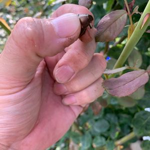 おはようございます☁️☀️33℃ 昨日の朝は元気だったのに 今朝見たら😱 コガネムシにやられてる😭 今年はあまり見なかったのに 何故この子に😡 葉っぱを何枚か葉挿しに 出来るかな😢