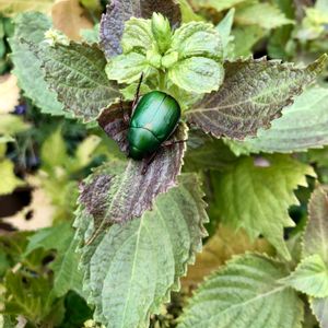 🏷「白い水曜日」に参加させて下さい🤲 我が家の寄植えに緑のお客様が来ました 先月のpicからです🤲 🪲お名前「アオドウガネブイブイ」と言う コガネムシ🪲でした❣️ 🪲お名前を教えて頂き感謝🌟致します🙌