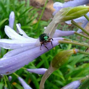 アガパンサスに集まる虫シリーズ⑥ カナブンの1つかな❔─コガネムシ(ソメさんに教えて貰いました) こんな虫も 飛んでくる。
