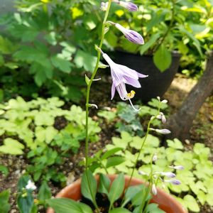 今日のお花🌿ギボウシ 本当は大好きなギボウシだけど 小庭だから植えられない(。•́ - •̀。) 鉢で「姫ギボウシ」を育てています。 小さめサイズはありがたいのです(´•ᴗ• ก )՞ ՞
