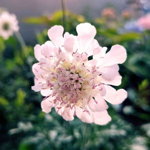 ❀.(*´▽`*)❀.オハヨウゴザイマス٭•。❁。.*・゚ 🎆今日のお花🎆 スカビオサ🤍白ときどき桃🍑 好みのタイプです⸜♡⸝ 2022年6月3日撮影📸