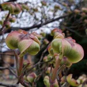 おはようございます☀ きのうの「ハナミズキ」をちょっとupで😍 花の形が珍しいってコメント頂き、今朝からじっくり観察、、。 もしや、花(白い苞)がまだパッカーンって開ききってなくて、くるくるっとカールしてる状態? へー、可愛い😍 20年庭に居るのに、ハナミズキをこんなにじっくりガン見したの初めてでした😁