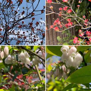 ハナミズキ 上を向いて咲いているので、上の部屋から望遠レンズ(雑誌の付録)で撮影😄 ブルーベリー こちらは下向き😅 筒状で授粉する虫も大変そうです。
