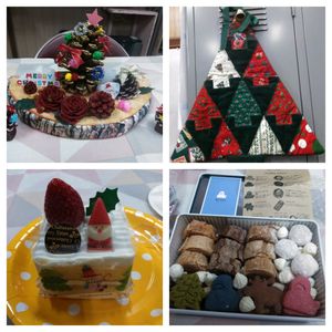 小学生の可愛い👦👧達と 嬉しい楽しいクリスマス会🎄 ①手作りキルト 木の実飾り シャトレーゼ🍰 差し入れの🎄クッキー ②↑リーダーからの🎁 ③代表からの紅茶の箱の言葉に胸キュン💞 ④⑤市役所ロビーのお花