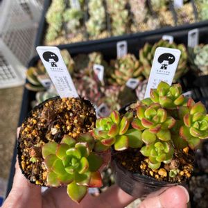 梅雨も夏も雨晒しで耐え抜いた葉挿しのレディシアとカキ仔の思い出露 可愛くなりそうで嬉しい₍₍ (ง ˙ω˙)ว ⁾⁾