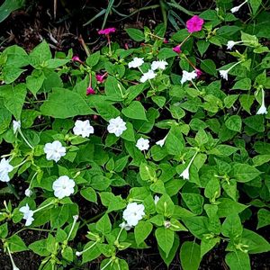 オシロイバナいっぱい運動♥️💛🍀🪴🎉💞💕😅😻🥰💐🍃 今、当家で咲いているミニ群生地です😅 全部で10箇所ありました🪴 パッと見、赤が多いですが、赤は1箇所で、他は赤と白、白、黄色、赤と黄色、赤白黄色の3色です😅 全体を撮影すると、濃い赤が目立つようです💦 今後は敷地内だけでなく、広く世の中にオシロイバナを広めたいと思います😀 その手段として 種をあげる🍀 問題ない場所に種を植える🍀 新規でタグを作りましたので、賛同していただける方は、 ♥️オシロイバナいっぱい運動 のタグを追加してください🙇