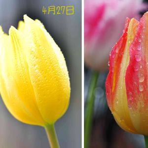 🌷暑がり家のチューリップリレー🌷 リレーのフィナーレ🎊を飾るのは こちら。色は黄色から 紅緋(べにひ)色に近い感じになりました。 picは4/11→4/18→本日 暖地なので 暑がり家のチューリップリレーは これにてゴール🎉🎉🎉 ご声援♡ありがとうございました😊