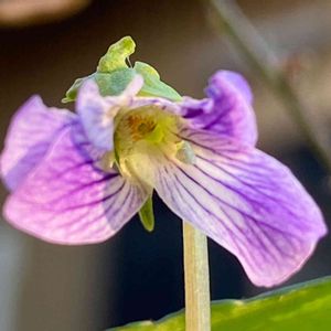 おはよう🔆 小さなスミレ。🌸 虫に食べられたようで、美人では無いけれど💦
