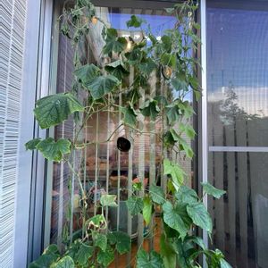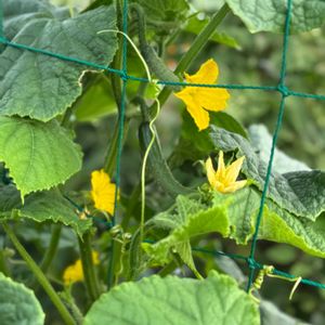 種まきが遅すぎた島オクラ。 小さな蕾が見えているのに、まだ1本も収穫できません。 生き生きと生長しているので、なかなか片付けられませんね💦 この後、下の方の脇芽を全部切り落として、頂点だけに養分が行くようにしましたよ🤗💕 せめて1つだけでも咲いてほしいなぁ🌼 そろそろ終わりを迎えるきゅうりは、支柱の上の方で実を付けます。最後まで種を残そうと頑張ってくれてます✨