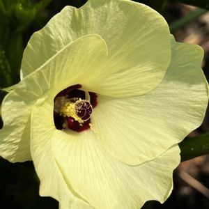 今日のお花 オクラ💛 島オクラがようやく➰ 収穫できるようになり 楽しみです🤗🎵💛 オクラのお花は綺麗ね〜😍