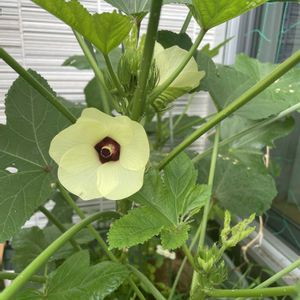 おや、島オクラちゃん👀 いつの間に花が咲いていたのだ…