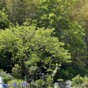 我が家の柏の木 西側斜面は筍山 樹齢50年以上! 子供が小さい頃は柏餅を作った❤️ 手前は富有柿、秋には沢山の実が! 柏の葉の新緑が眩しい。 足元を見ると筍が!