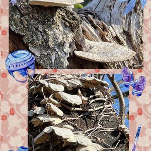 茸 猿の腰掛でしょうか⁉️ 我が家の裏庭で、柏の木と柿の木にできています 大きな切り株の幹の茸、誰が名付けたのでしょうか⁉️