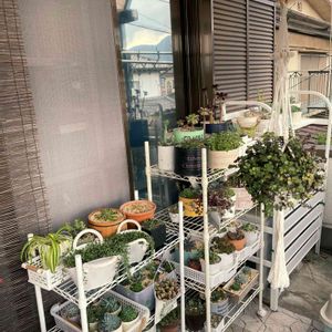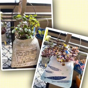 うちのベランダ。 今年はカリシアをマクラメハンギングしたら、めっちゃ可愛い🥰みりん🐱に狙われるのでベランダに! ボールになってきました😍 マクラメは上司からいただきました😊 それまではただの紐で吊るされてたので、カリシアも今は喜んでると思います😊