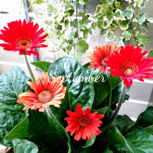🤍ྀི🌥おはようございます(*´v`) 9/9 火曜日 ︎︎𓂃⟡.·♥️ ムシ ムシ 蒸し暑いなぁ~😣 🏷️ 真っ赤な火曜日に参加しま~す きのう お迎えして🩷🌸ナデシコさんと寄せ植えにした ガーベラです❣️ 今日も良い一日であります様に…
