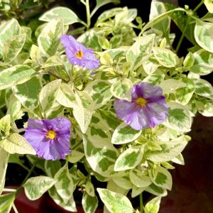 ソラナム ラントネッティ バリエガータ🌸 葉っぱも綺麗なのですが、やっと咲き出してくれました❣️ ソラナムさんの透明感のあるお花がとっても綺麗です🥰