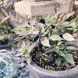 観賞用トウガラシ パープルフラッシュ 観賞用というだけあって 実も葉っぱも しっかり楽しませてくれてる